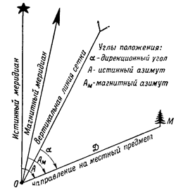 дирекционный угол а, истинный азимут А и магнитный азимут Ам (рис. 8).