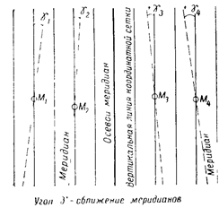 Рис. 11. Сближение меридианов