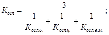 Коефіцієнт ослаблення залежить від тривалості перебуван ня людей на протязі доби на відкритій місцевості, в будинках і виробничих будівлях. В звичайному режимі приймають, що робітники і службовці знаходяться дома / Косл.д. /, на роботі в цеху / Косл.ц . / і на відкритій місцевості /Косл.в.м. / по 8 годин протягом доби.