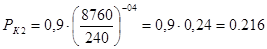 де РП2 , РК2 - piвні радіації на початку /t П / і в кінці /t К / середньої фази аварії, t П = 10 яіб; t К = 355+10 діб /час у формулу підставляють в годинах/.