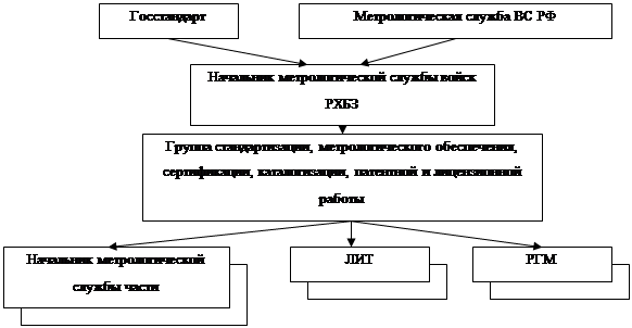 В войсках РХБ защиты организационная структура метрологического обеспечения выглядит следующим образом: