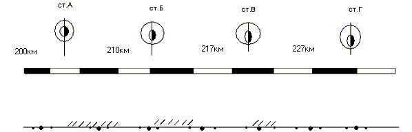 На всех трёх перегонах используется крюковой и траверсный способ подвески проводов, опоры устанавливаются в грунт. Характер разрушений: подрыв на высоте Н=1,6 м, механическое разрушение проводов. Тип грунта: II. Факторы, затрудняющие восстановительные работы отсутствуют. Наличие запасов материалов: нет. Срок восстановления: 4 суток. Плечо подвоза восстановительных материалов: 85 км. При этом заготовка столбов производится в местных лесных массивах. Профиль ВЛС представлен на следующем рисунке: