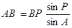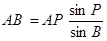 На лінійці встановлюють край шкали движка проти бази Б по шкалі чисел Nкорпуса лінійки. Потім, не рухаючи движка, риску візира встановлюють напроти кута В на шкалі Sin.