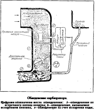 Рассмотрим сначала влияние на мощность двигателя температуры воздуха. Снижение мощности в данном случае вызывается главным образом уменьшением плотности воздуха вследствие повышения его температуры. Известно, что с увеличением температуры плотность, или вес определенного объема газа, уменьшается пропорционально его абсолютной температуре. Когда температура воздуха на 10° F (^5° С) выше температуры по стандартной атмосфере на уровне моря, равной 59° F (15° С), плотность воздуха уменьшается примерно на 2%; соответственно уменьшается и вес кислорода, содержащегося в единице объема воздуха. В то'же время более теплый воздух гораздо легче проходит через карбюратор, всасывающие патрубки, клапаны и пр., в результате чего величина снижения мощности двигателя, вызванного уменьшением плотности воздуха при его нагревании, уменьшается вдвое.