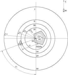 Для полного представления возможной обстановки на объекте и в районе его расположения целесообразно нанести на план местности границы зон разрушений в очаге ядерного поражения при заданной мощности боеприпаса.