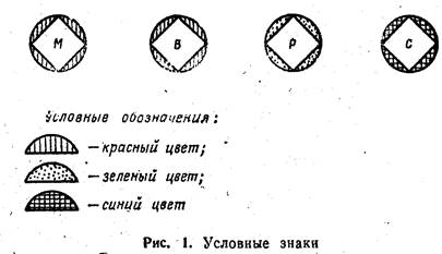 в правом верхнем углу - условный знак (рис. 1) диаметром 20 мм;