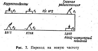 , затрудняющих ведение обмена, она дает команду корреспондентам заменить частоту их передачи, сообщая одновременно номер новой частоты.