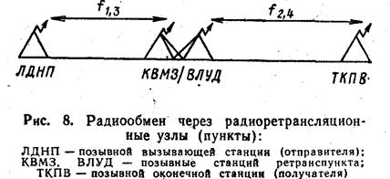 Установление связи и радиообмен между оконечными станциями при работе через ретранспункт производятся порядком, изложенным в предыдущих статьях Руководства.