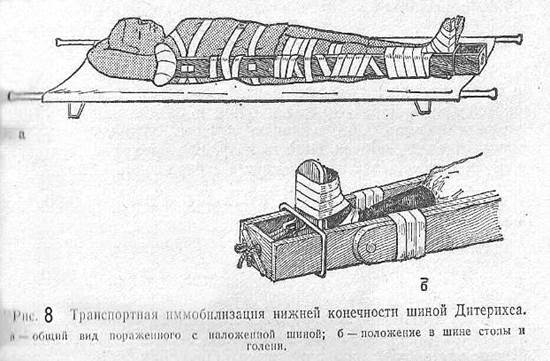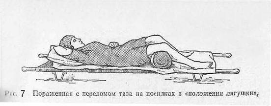 и гематому области перелома, вагосимпатическая блокада. Положение пораженного в зависимости от состояния — полусидя или лежа на спине с небольшим валиком под лопатками; голова повернута в противоположную сторону, надплечье опущено.