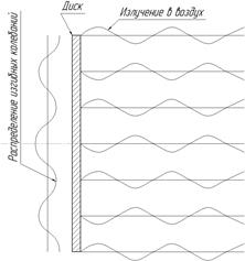 На рисунке 7 представлено распределение изгибных колебаний по поверхности плоского диска и излучение отдельных точек поверхности диска в воздух.