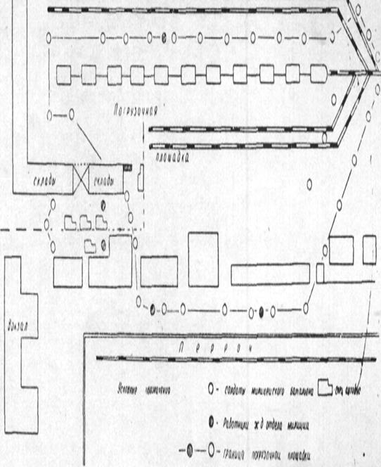 Если прибывал товарный состав, войсковой наряд в количестве 5—8 человек осматривал вагоны, не вскрывая опломбированных. Пассажирские поезда прибывали на станцию с закрытыми на замок и опечатанными в пункте отправления вагонами. Это делали для того, чтобы исключить возможность выхода пассажиров из вагонов и посадки в них посторонних лиц.