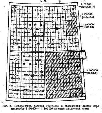 Как видно из рис. 8, счет листов всех масштабов ведется слева направо и сверху вниз, при этом: