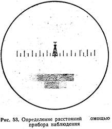 Ошибка измерения расстояний по угловым размерам предметов не превосходит 8% определяемого расстояния при условии, что размеры наблюдаемого предмета известны достаточно точно, а величина угла У не превышает 300 тысячных (3-00).