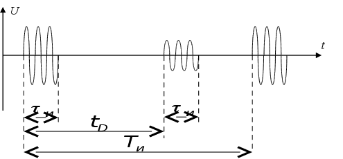 Система синхронизации определяет импульсную работу РЛС. Она формирует видеоимпульсы через постоянные промежутки времени Ти. Ти называют периодом повторения импульса. Т.о. система синхронизации определяет период работы – один цикл определения дальности.
