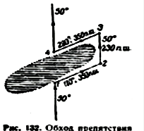 На закрытой местности или в условиях ограниченной видимости обход препятствий можно совершать по компасу следующим образом (рис. 132):