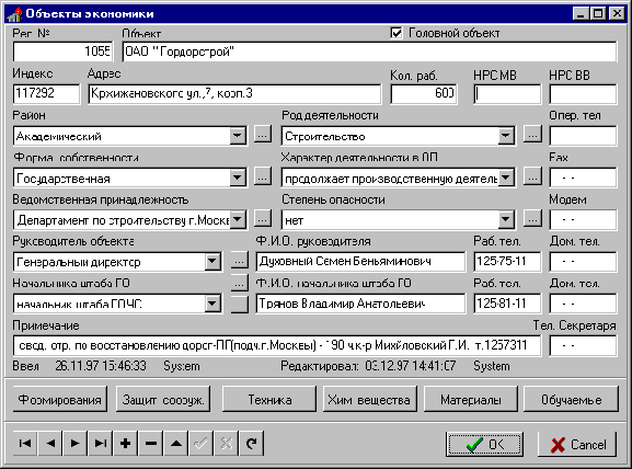 Дипломный проект посвящен разработке базы данных объектов гражданской обороны и в современных условиях возрастания риска чрезвычайных ситуаций техногенного и экологического характера данная тема является несомненно актуальной.