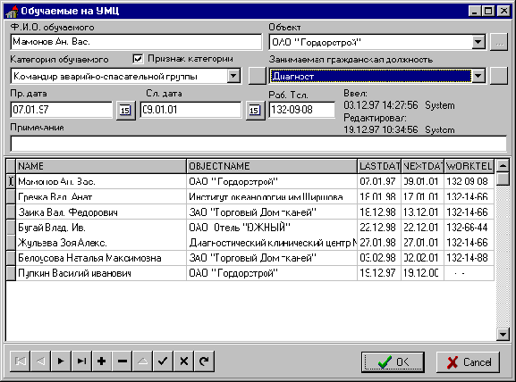 Результатом дипломного проектирования является разработанная база данных по объектам экономики, объектам гражданской обороны и учащихся в учебно-методическом центре. А так же программа по управлению базой данных, которая позволяет производить различные действия: ведение, корректировку данных, построение отчетов и составление различной статистической информации.