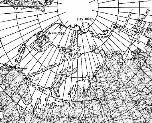 В 1893-1896 годах произошел исторический дрейф судна «Фрам». Экспедиция отправилась в путь в июне 1893 года из Христиании (современный Осло). На запас имелось провизии на пять лет и топлива на восемь. «Фрам» проследовал вдоль северного побережья Сибири. Не доходя до Новосибирских островов около 100 миль, Нансен изменил курс на более северный. К 20 сентября, достигнув 79º с.ш., «Фрам» прочно вмерз в паковый лед. Нансен и его команда приготовились к дрейфу на запад, к Гренландии. Дрейф «Фрама» прошел не так близко к полюсу, как надеялся Нансен. Он решил предпринять попытку броска к полюсу, взяв с собой одного из самых сильных и выносливых участников экспедиции, Ялмара Йохансена. В марте 1895 года Нансен в сопровождении Йохансена покинул корабль, который в это время находился на северной широте 84°05' и восточной долготе 101°35'. Их попытка не увенчалась успехом. Условия оказались сложнее, чем предполагалось — им часто преграждали путь ледовые торосы или участки открытой воды, что создавало препятствия. Наконец, достигнув 86º14’ с.ш., они решили повернуть назад, и отправились к Земле Франца-Иосифа. Нансен и Йохансен не достигли полюса, но они подошли к нему ближе, чем все предыдущие путешественники. Через три месяца Нансену и Йохансену удалось добраться до Земли Франца-Иосифа, где они зазимовали в выстроенной ими из шкур моржей и камней землянке.