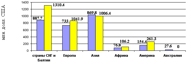 В 2003 году процесс изменения основных направлений внешней торговли продолжился. Правда, трудно связать эти изменения с деятельностью украинских властных структур. Процесс развивается скорее в силу конъюнктуры мирового рынка. По сравнению с 2002 годом география внешней торговли Украины претерпела некоторые изменения. Продолжилось снижение товарооборота со странами СНГ и Балтии. Удельный вес внешней торговли этих государств снизился с 45,35% в 1998 году до 39% в 2003 году. Доля государств остального мира увеличилась с 52,2% до 57,8%.