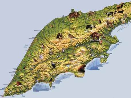 Существование в условиях почти островной изоляции и своеобразных условий окружающей среды привело к образованию подвидов у ряда животных. Это самый крупный подвид бурого медведя, соболь с наиболее пышным и красивым мехом.