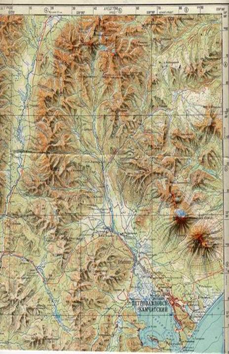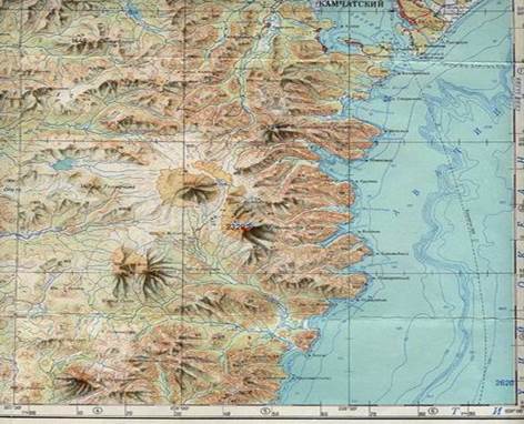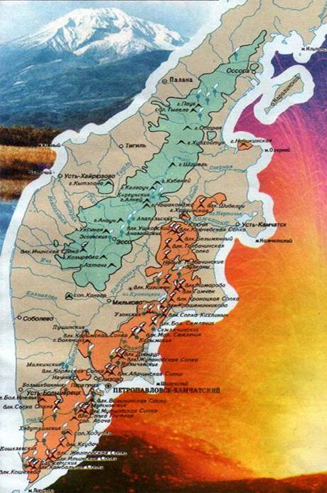 Камчатская область – уникальный регион по своеобразию географического положения и разнообразию природных ландшафтов. Полуостров Камчатка соединяется с материком Парапольским перешейком (около 100 км.). Вдоль полуострова тянуться Срединный (высота до 3621 м.) и Восточнй (высота до 2485 м.) хребты, между ними Центральнокамчатская низменность с рекой Камчатка.