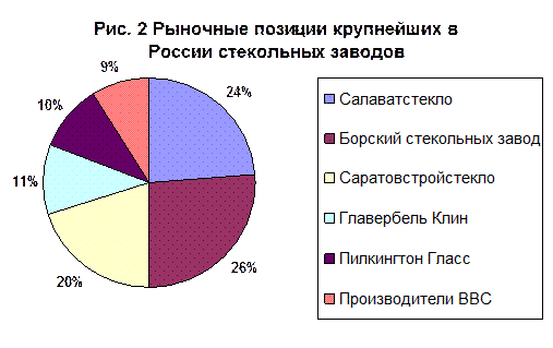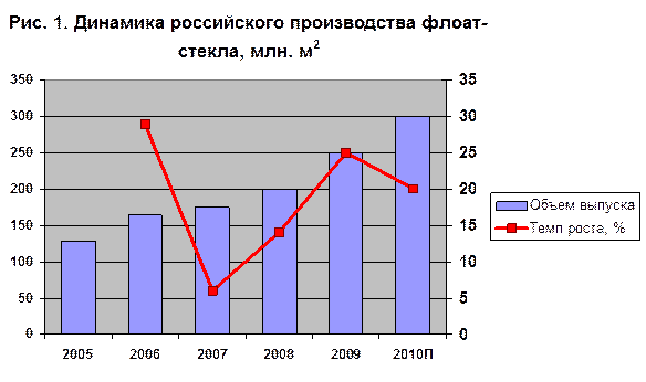 В 2008 году в России было произведено около 100 млн. квадратных метров плоского стекла и 6 млрд.200 млн. штук стеклянной тары, в том числе, 5 млрд. 300 млн. штук узкогорлой и свыше 900 млн. штук широкогорлой тары или 7% мирового выпуска (4 место в мире). При этом из общего объема производства стекла экспортировалось 30%, что составляет около 1,3 % мировой торговли (18 место в мире). Таким образом, отечественная стекольная промышленность функционирует в общей системе мировых хозяйственных связей, и ее состояние в значительной степени зависит от тенденций развития мировой стекольной отрасли.