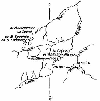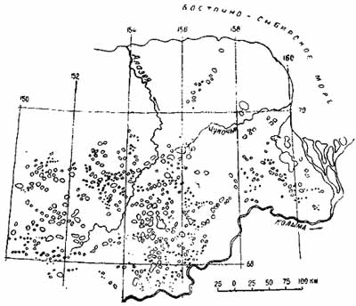 Исключительное обилие озер характерно для района Колымской и Алазейской низменностей (рис. 2)[20] . В бассейне Витима расположены группы Еравнинских и Арахлейских озер (рис. 3).[21]