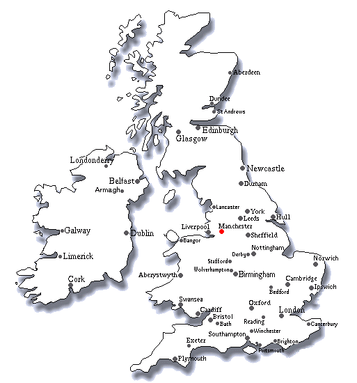 Крупнейшие города - Бирмингем, Глазго, Ливерпуль, Манчестер, Шеффилд, Лидс, Эдинбург, Белфаст.