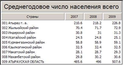Численность населения Атырауской области на 1 декабря 2009г. по текущим данным составила 512,5 тыс. человек. По сравнению с 1 декабрем 2008г. она увеличилась на 2,3 %, что обусловлено увеличением числа родившихся и снижением смертности населения.