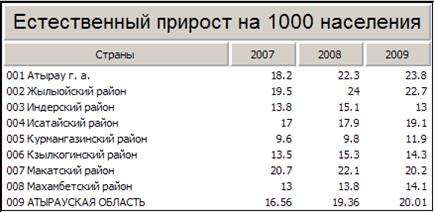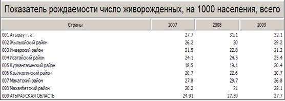 Атырауская область среди регионов республики занимает одно из ведущих позиций по естественному приросту населения. Стабильная доля сельского населения обеспечивает повышенную рождаемость. Смертность продолжает снижаться. Среди основных классов причин смерти населения наибольший удельный вес, как и прежде, занимают болезни системы кровообращения (31,1%).