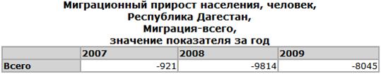 Однако демографические проблемы Дагестана всё труднее скрыть. 2008 год стал последним, когда в трудовой возраст вступило многочисленное поколение 80-х годов. С 2009 года в трудовой возраст вступает менее многочисленное поколение 90-х годов. Сегодня в Дагестане на 2,6 млн. детей рождается меньше, чем в 1980-е гг., когда в республике жили лишь 1,7 млн. человек. К сожалению, многие дагестанцы не могут реализовать свои способности на малой родине, и это вынуждает их покинуть республику. Свыше 60% дагестанских мигрантов составляют неквалифицированную рабочую силу. 13% дагестанцев за пределами республики смогли реализовать себя в различных сферах: промышленности, образования, здравоохранения, предпринимательства и управления. При этом ежегодно через дагестанский участок государственной границы в Российскую Федерацию прибывает более полумиллиона иностранцев (это население г. Махачкалы). Актуальна проблема нелегальных мигрантов в столице республики.