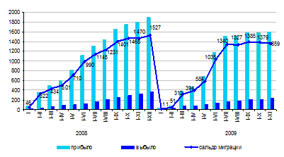 В январе-ноябре 2009г. по сравнению с январем-ноябрем 2008г. число прибывших в Атырау уменьшилось на 4,3%, а число выбывших из Атырау уменьшилось на 3,7%.
