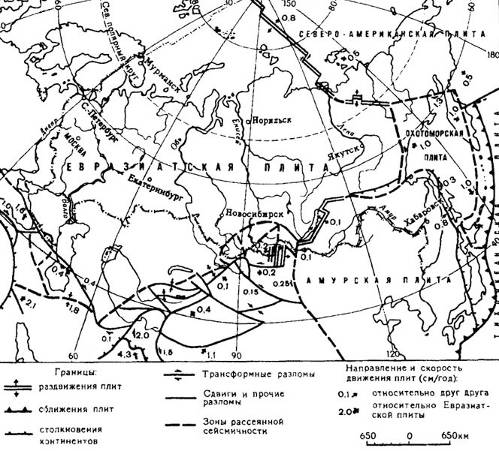 Рис. 4. Карта границ литосферных плит Северной Евразии
