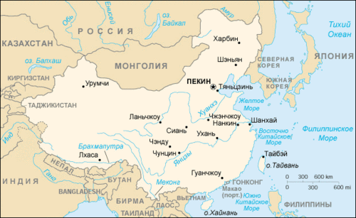 КНР - это одна из самых крупных стран мира. Ее площадь составляет порядка 10 млн. км2 , она протянулась с запада на восток на 5700 км, а с севера на юг на 3.7 тыс. км. и занимает третье место в мире по размерам территории