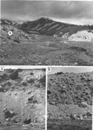 Лахароопасные зоны начинаются на конусе вулкана, где пути движения лахаров предопределены эрозионными врезами и на протяжении 10-17 км полностью захватывают узкие долины рек. Борта долин в пределах этих участков поднимаются над руслами на 20-100 м и служат естественными границами лахароопасных зон, ширина которых обычно 100-300 м, но иногда увеличивается до 500-600 м (устье оврага Широкий). В некоторых случаях в верховьях долин сухих рек, где скорость и мощность лахаров велики, они будут "захлестывать" на прилегающие участки междуречий (так, в верховьях р.Сухая Халактырская слой грязи лахара 1938 г. (рис.10) толщиной около 0,5 м обнаружен нами на левом борту долины на высоте 12-15 м над руслом).