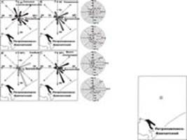 Для выделения зон, в прошлом наиболее подверженных воздействию сильных пеплопадов, нами была использована методика, ранее примененная при оценке вулканической опасности для одного из районов Кроноцкого заповедника [21]. Очевидно, что в любой точке территории, подверженной пеплопадам, однажды выпадает максимальное для данного места количество пепла. В разрезах на всей площади подножия вулкана фиксировалась максимальная мощность слоя тефры, которая выпадала здесь за последние 4000 лет за одно извержение, независимо от возраста и положения этого слоя в разрезе. Полученные значения были использованы для построения изолиний максимальной мощности единичного пеплопада (рис.7 ). Их рисунок подчеркивает характерные особенности в распространении пепловых туч. Участки, ограниченные изопахитой 20 см, вытянуты от кратера в юго-западном, северо-восточном и юго-юго-восточном направлениях. В последнем случае такая зона максимальных мощностей тефры шириной 32 км охватывают почти всю территорию этого сектора вплоть до берега океана и прилегающие акватории. На юго-юго-западе изопахита 20 см глубоко вдается в сторону подножия вулкана, очерчивая "мертвую зону", где опасность от сильных пеплопадов в прошлом была наименьшей. Именно в этой зоне находится г.Петропавловск-Камчатский. Та же близкая картина видна и на рис. 8 А, где показаны направления осей пеплопадов при сильных извержениях. При умеренных и слабых извержениях (рис.8Б и 8В) оси пеплопадов также были приурочены преимущественно к восточным румбам. Это хорошо согласуется с розой ветров для г.Петропавловск-Камчатский [7] и позволяет допускать, что за последние 4000 лет характер циркуляции воздушных масс с преобладанием западных ветров сохранился без существенных изменений.