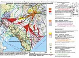 Выделены области, отличающиеся по степени вулканического риска (рис.14 ):
