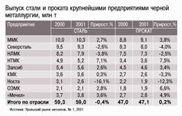 Все ведущие металлургические компании осуществляют обширные инвестиционные программы за счет собственных и заемных средств, направленные на доведение качества продукции до требований мирового рынка, автоматизацию и компьютеризацию технологических процессов, в смежные производства, а также в развитие сырьевой базы. Тем не менее, условия настоящего времени, особенно в преддверии вступления в ВТО, требуют усиления этого процесса.