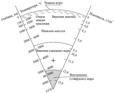 Зная радиус Земли, можно подсчитать, что в центре ее температура должна достигать 200 000 °C. Однако при такой температуре Земля превратилась бы в раскаленный газ. Принято считать, что постепенное повышение температур происходит только в литосфере, а источником внутреннего тепла Земли служит верхняя мантия. Ниже рост температур замедляется, и в центре Земли она не превышает 50 000 °C.
