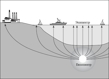 Рис. 26. Гипоцентр и эпицентр землетрясения