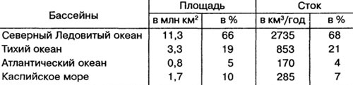 Таблица 2. Распределение речного стока России по бассейнам океанов*