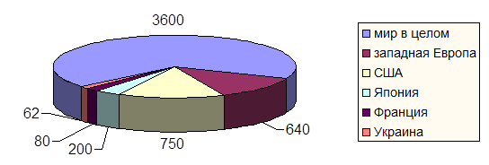 Рисунок №3 Мощность атмосферной перегонки (млн. т) в мире и отдельных странах. [6,19]