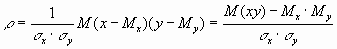 Коэффициентом корреляции r между случайными величинами х и у называется математическое ожидание произведения их нормированных отклонений: