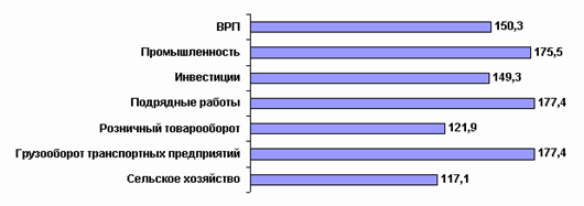 В 2002 году прирост валового регионального продукта к 1996 году составил 50,3%, объемов промышленного производства – 75,5%, валовой продукции сельского хозяйства – 17,1%, грузооборота транспортных предприятий – 77,4%, оборота розничной торговли – 21,9%, инвестиций в основной капитал – 49,3%, объем подрядных работ – 77,4%.