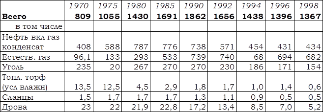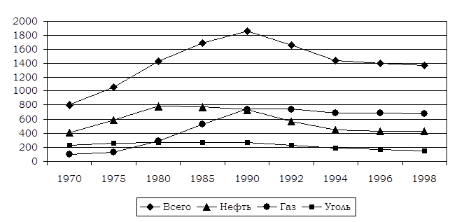 3. Экономическая оценка деятельности топливной промышленности за 1970 – 1998 годы.