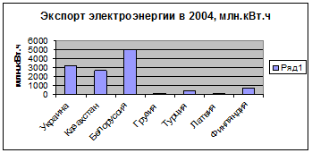 Рис. 2 - Экспорт электроэнергии в 2004 году