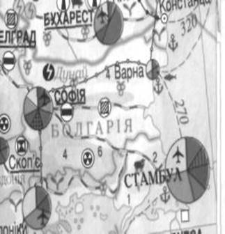 Болгарія (болг. България ), Республіка Болгарія – держава у Півд.- Сх. Європі. Розташована в східній частині Балканського півострова. Межує на півночі з Румунією – вздовж Дунаю, на півдні – з Грецією і Туреччиною, на заході – з Сербією і Македонією. На сході омивається Чорним морем (протяжність берегової лінії - 378 км). Пл. 110,9 тис. км2 . Населення - 8,257 млн чол.(2001). Столиця – Софія[див.дод.В]. Державний прапор Болгарії складається із білої, зеленої та червоної горизонтальних смужок із гербом у лівій верхній частині.[див. дод А] Біла смуга - символ миру та свободи, зелена - природні багатства країни, червона - символ мужності і крові патріотів, яку пролито в боротьбі за незалежність. Прапор у нинішньому варіанті існує від 1947 року. Герб Республіки Болгарія- це золотий коронований лев, що стоїть на задніх лапах, на червоному тлі у формі щиту, під яким напис: "Сила в об'єднанні". Щит тримають два золотих коронованих прямостоячих леви із лівої та правої сторони. Вони стоять на схрещених дубових гілках із жолудями. Щодо природив Болгарії Незважаючи на густу річкову мережу, Болгарія крім річки Дунай не має інших судноплавних річок. Притоки Дунаю беруть свій початок в Старій Платні, за винятком ріки Іскр, яка бере початок з Вітоши. У Чорне море впадають річки: Провадийська, Камчія, Ропотамо, Диявольська ріка, Велека, Резовська ріка та інші. Останні три річки беруть свій початок з гори Странджа. Ріка Мариця і її найбільша притока Тунджа збирають води з південних схилів Старої Платни і північних схилів Родоп. Ріки Струма і Мариця впадають в Егейське море. Вони несуть води з Ріли і Пірину, а також з гір, що межують з Сербією і Македонією. Ріка Места також впадає в Егейське море, а бере початок з Пірину. Басейни річок Дунаю і Мариця покривають дві треті території двох великих рівнин. У західних частинах Родоп споруджені водні системи і водосховища. Наприклад, Батак, водосховище Васіл Коларов, гідро-енергосистема Арда, водосховища Студьон кладенець (Холодний кладенець), Кирджалі та Івайловград. Неподалік Софії знаходиться водосховище Іскр. Крім того, є водосховища Георгій Димитров, Білий Іскр, Петрохім, Бразинці та інші. Хоча запаси корисних копалин в Болгарії невеликі, гірнича промисловість в країні у XXI ст. має хороші шанси для розвитку. Найважливіші корисні копалини — лігніти, руди заліза, свинцю, цинку і міді. Країна має промислові запаси мідної руди на 30-50 років, золотовмісних руд — на 20 років, свинцевих і цинкових руд — на 20 років, залізняку, марганцевої руди і вугілля, індустріальної сировини і декоративного каменя — більш ніж на 200 років. Загальна цінність розвіданих мінеральних ресурсів (не рахуючи нафти і газу) складає біля 320 млрд дол. США. Відносна частка окремих різновидів ресурсів наступна: вугілля — 54,47 %; руд кольорових і дорогоцінних металів — 5,69 %; чорних металів — 2,05 %, індустріальної сировини — 23,64 % і декоративного каменя — 14,15 %. Щодо розвитку політики в .Болгаріі слалося що в системі міжнародних відносин після закінчення Першої світової війни розкрито складне становище країни, яка одержала поразку в війні і з якою країни-переможниці будували свої стосунки методом диктату, нав’язавши їй на Паризький мирній конференції несправедливий Нейіський мирний договір. З цього часу значну роль у вирішенні складних зовнішньополітичних проблем стала в