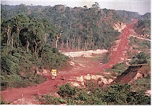 основном территории, располагающиеся не в сплошном лесу, а в пограничной зоне между экваториальным лесом и саванной, в таких штатах на юго-западе Амазонии как Мату-Гросу или Рондония. Таким образом, сохраняется закономерность в размещении антропогенного сокращения лесов, отмеченная для умеренного пояса и заключающаяся в том, что вырубаемые леса находятся в экотонной полосе между лесными и травяными формациями. Рис.5. Строительство дорог