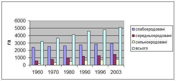 Сільськогосподарські угіддя, розміщені біля розмитих грунтів та виходів порід становлять незначну площу. Їх доцільно засадити лісом або використовувати під постійним залуженням.