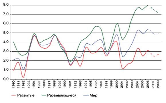 Рисунок 1. Темпы прироста мировой экономики, 1980–2008 гг., %